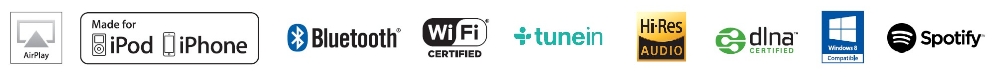 《音訊&網路功能》 Pure Direct / Direct 聆聽模式 Apple AirPlay認證 DLNA Certified™ (1.5) Windows®8.1相容 高解析音樂檔案經網路/USB播放: WAV, FLAC, Apple Lossless, WMA Lossless, WMA, AAC, OGG Vorbis, MP3 ◎ 192kHz/24 bit 音訊播放 (WAV*1, FLAC *1) ◎ DSD *2檔案播放 (2.8/5.6 MHz) Spotify® 數位音樂串流*3 TuneIn 網路收音機