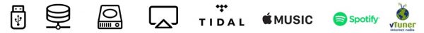 支援檔案格式:AIFF, ALAC, APE, DIFF, DSF, FLAC, OGG, WAV, AAC, MP3, MQA, WMA