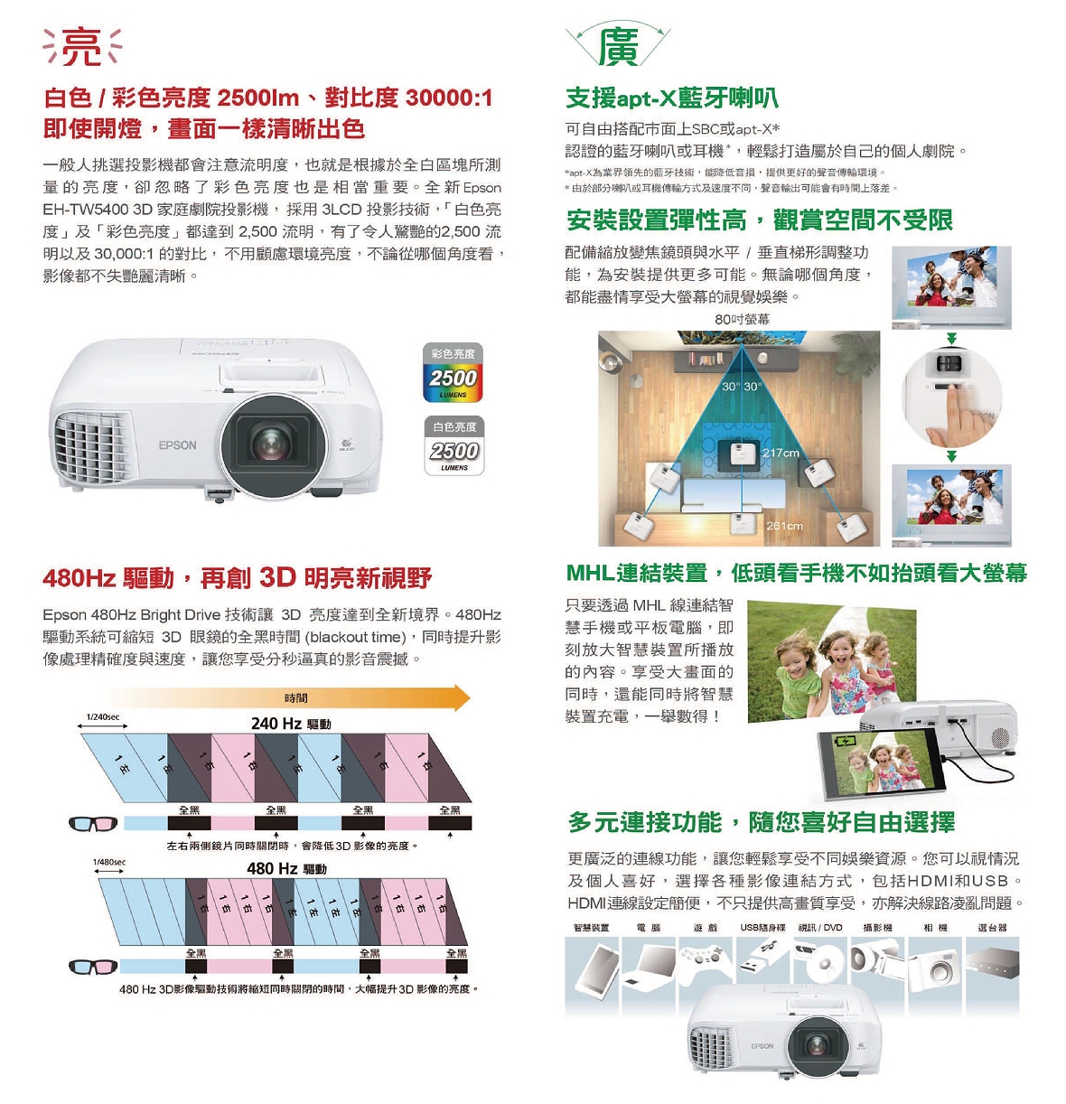 CP值高的3D家庭劇院投影機,白色/彩色亮度2,500流明最亮麗,30,000:1高對比更亮眼。