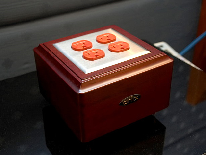 英國ONIX電源座,採用 10c m實心花梨木一體成型製成,外觀古典質優,中間挖空處配以ONIX原廠 最高等級OCC單結晶銅插座(品質更勝醫療級),可有效提昇音頻動態,使音質溫潤甜美,是高級音響必備之良方器具