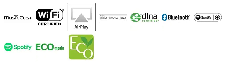●Network section:DLNAVersion 1.5 ●檔案格式: MP3, WMA, MPEG4 AAC, WAV, FLAC, AIFF, ALAC, DSD ●AirPlay:Yes ●網路:Wi-Fi (with Wireless Direct) ●藍牙:Yes (SBC / AAC) ●最小RMS 輸出功率:100 W + 100 W (8 ohms, 40 Hz-20 kHz, 0.2% THD) ●最大功率(4 ohms, 1kHz, 0.7% THD):115 W + 115 W ●Maximum Power(8 ohms, 1 kHz, 10% THD):140 W + 140 W ●高動態功率/聲道(8/6/4/2 ohms):125 / 150 / 165 / 180 W ●頻率回應:0 ± 0.5 dB / 0 ± 3.0 dB ●訊號雜訊比 (CD):100 dB (Input shorted, 500 mV) ●音訊入/出:6 / 1 ●Digital Input:Yes (光纖*1/同軸*) ●內部網路:Yes ●Headphone Out:Yes ●收音機功能:FM/AM ●待機耗能:0.1 W (Network standby on / Wi-Fi connection; 1.8 W) ●尺寸(寬x高x深度):435 x 141 x 340 mm (with antenna up: 435 x 202 x 340 mm) ●重量: 7.2 公斤 ●Phono Input:Yes
