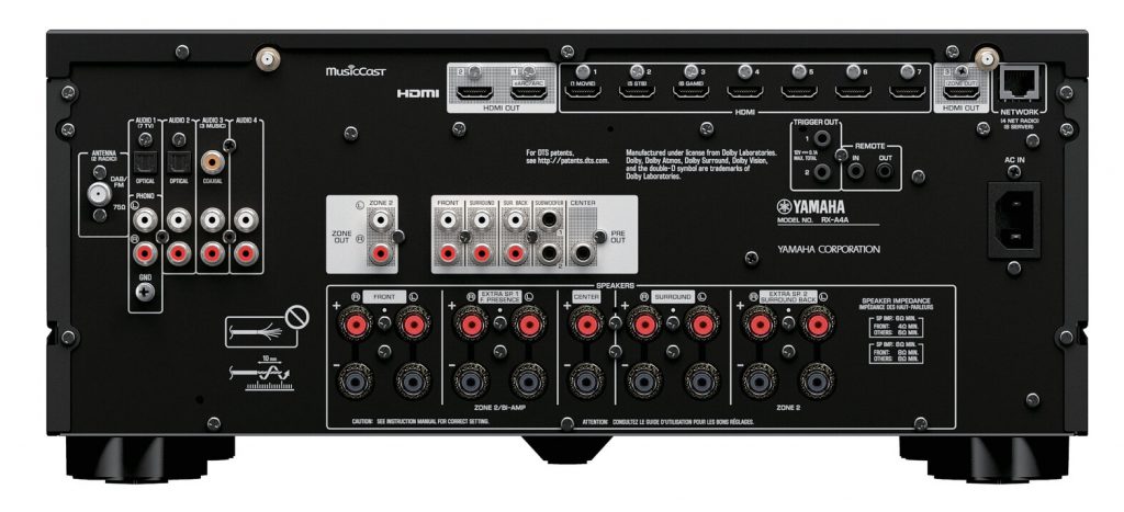 | 配件 | 電源線,遙控器,2節AAA電池,AM天線,FM天線,YPAO麥克風,麥克風底座,桿,啟動指南,安全注意事項 | |