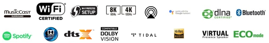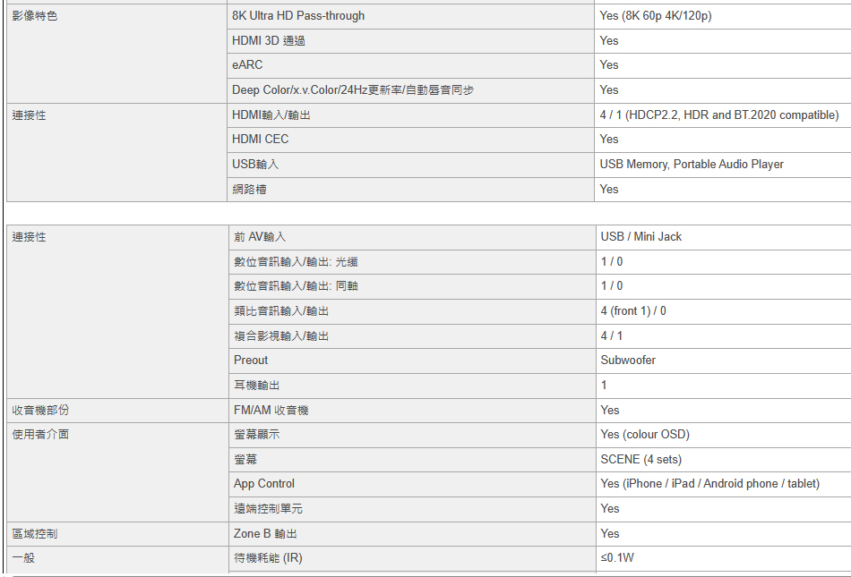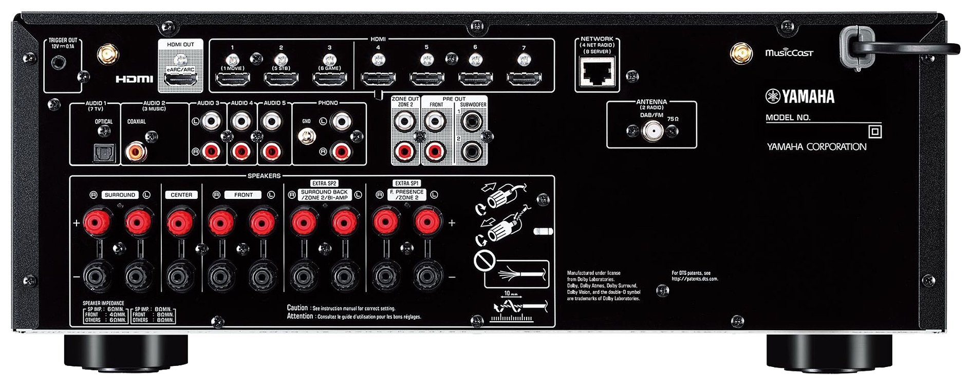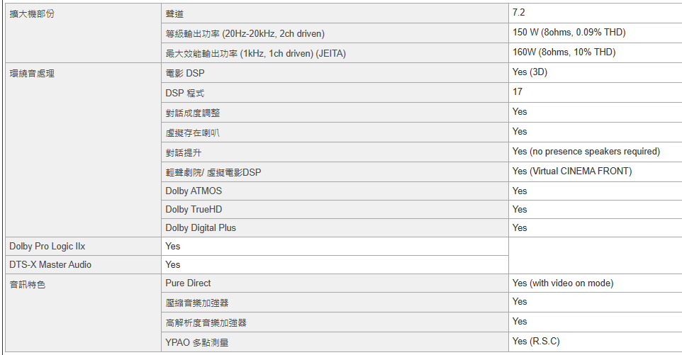 內建 CINEMA DSP 3D、HDMI™ 7 進/ 1出及無線環繞功能的 7.2 聲道 AV 擴大機。 |